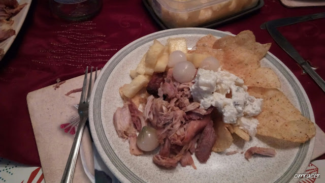 This was finally it, the amazing meal that most supermarkets hype up big time, and it was a nicely decorated table, UB40 was being blasted on the speaker with a PUG feeling on it and we finally got sat down and Mum and Sister got the food laid out, Partsnips, Pigs in blankets, Horseradish and much more. It was a scrumptious meal..